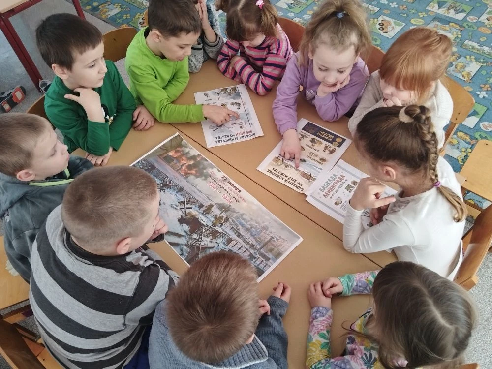 В ясельной группе "Матрёшки" ко дню полного освобождения Ленинграда от фашистской блокады прошли тематические занятия. Целью которых было ознакомление детей с историческим событием — Великой Отечественной войной, блокадой Ленинграда, развитие словарного запаса и воспитание патриотических чувств. Дети рассматривали иллюстрации с изображениями: военной техники, проходящей по "дороге жизни"; блокадного хлеба; разрушенного города и жизни в блокадном Ленинграде — детей и взрослых. Также ребята слушали запись симфонии "Ленинградская" Дмитрия Шостаковича.