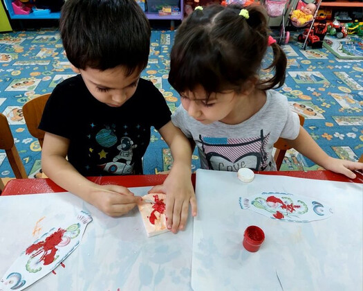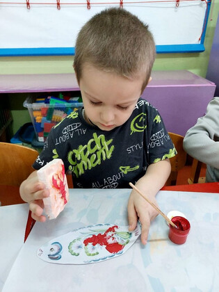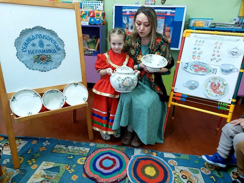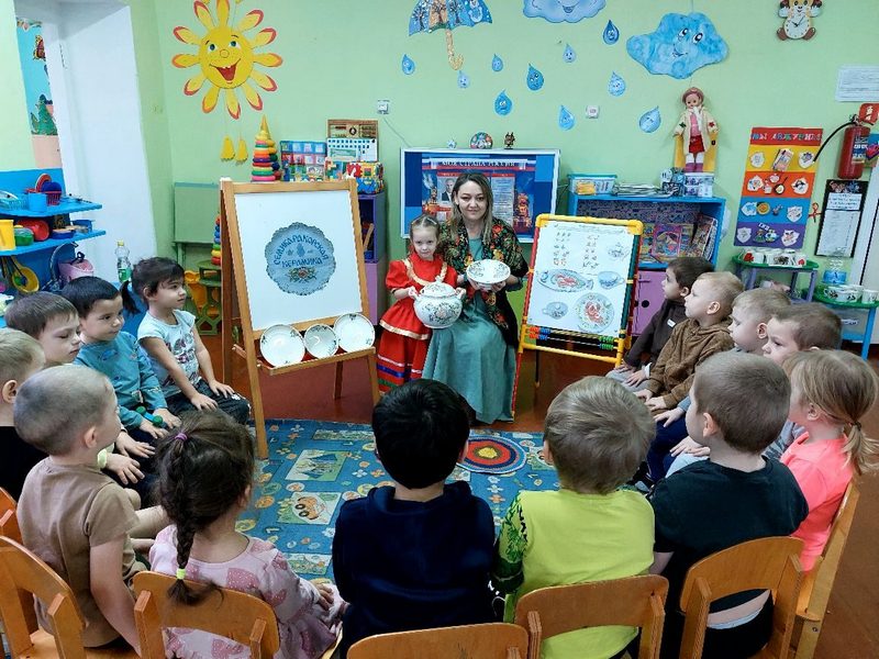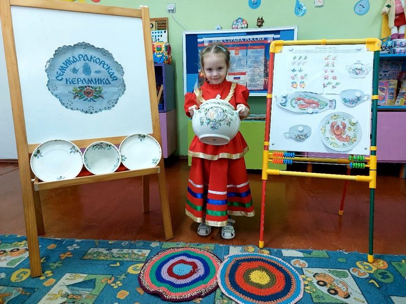 Ах, как прекрасен край Донской! Бескрайние поля и степи, Хоть воздух здесь и не морской, Лугам и рекам радуются дети. Ксения Котина Широко и спокойно раскинулась необозримая Донская степь — то яркая и пёстрая, то с мелодичной, завораживающей спокойной красотой, таинственная и загадочная. На донской земле есть город Семикаракорск — тихий уголок, хранящий в своём названии отголоски далёкой эпохи, когда по донским степям кочевали тюркские племена. Здесь время словно замедляет свой бег, бережно храня традиции старинного ремесла и позволяя рождаться чуду с особым южным колоритом, с которым и познакомились воспитанники средней группы. Воспитатель Федосеева Юлия Владимировна провела с ребятами беседу «Семикаракорские узоры», во время которой рассматривали образцы семикаракорской посуды и иллюстрации. Затем малыши попробовали себя в роли мастеров по росписи и расписали Семикаракорское блюдо в технике нетрадиционного рисования, изображением, которое является гастрономическим символом Дона. Благодаря способности сохранять концентрацию и удерживать внимание на выполнении рисунка, у ребят на Семикаракорском блюде появился сочный рак. Дети с удовольствием познакомились с семикаракорской росписью и многоцветьем донского казачества. | |
