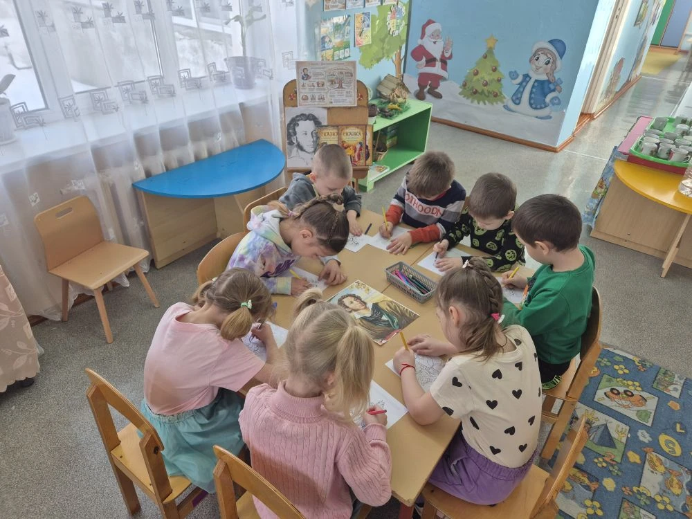 Так, накануне Дня памяти Александра Сергеевича Пушкина, в старшей группе «Воробушки» был успешно проведен краткосрочный проект, направленный на погружение ребят в творческое наследие гениального русского поэта. Дети окунулись в атмосферу любимых сказок Пушкина: «Сказка о золотом петушке», «Сказка о царе Салтане...», «Сказка о мертвой царевне и семи богатырях», «Сказка о попе и о работнике его Балде», «Сказка о рыбаке и рыбке». Ребята внимательно смотрели презентации о жизни и творчестве поэта, активно участвовали в увлекательной викторине, наслаждались звучанием стихов и отрывков из знаменитых сказок. Они увлеченно собирали пазлы, вдохновленные волшебством пушкинских сюжетов, и с радостью раскрашивали яркие иллюстрации, созданные по мотивам произведений классика.