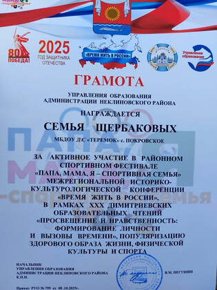 Самое ценное у человека – это жизнь, самое ценное в жизни – здоровье! На спортивном районном фестивале «Папа, мама и я – дружная семья», который проходил в рамках ХХХ Дмитриевских образовательных чтений, наш детский сад представляла семья воспитанницы средней группы Алисы Щ. Хотя спортивная программа была довольно насыщенной, а соревнования проходили в напряжённой борьбе, задор и желание прийти к финишу первыми захватили Алису и её семью. Они проявили не только ловкость, силу и умение, но и способность работать одной командой, что и привело их к победе. | |