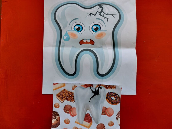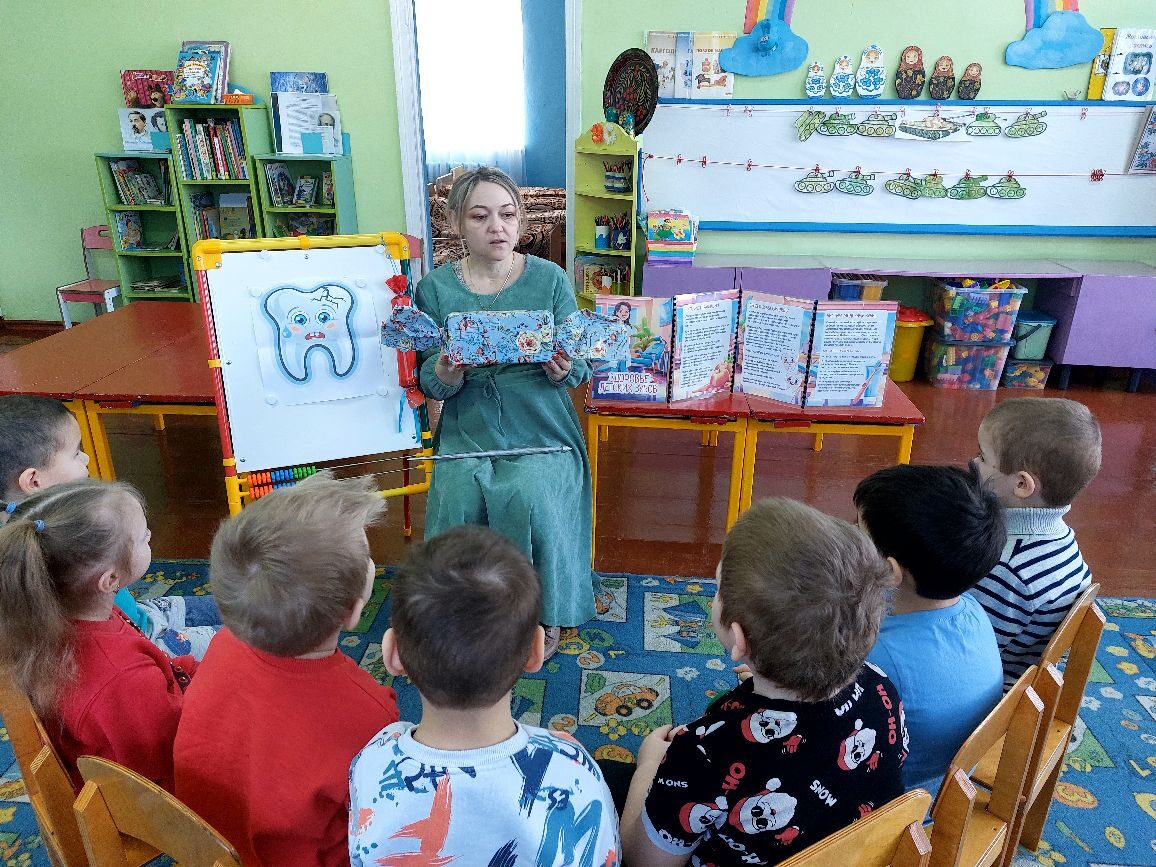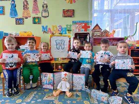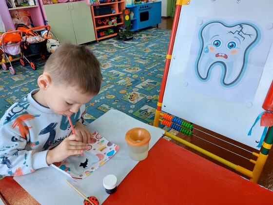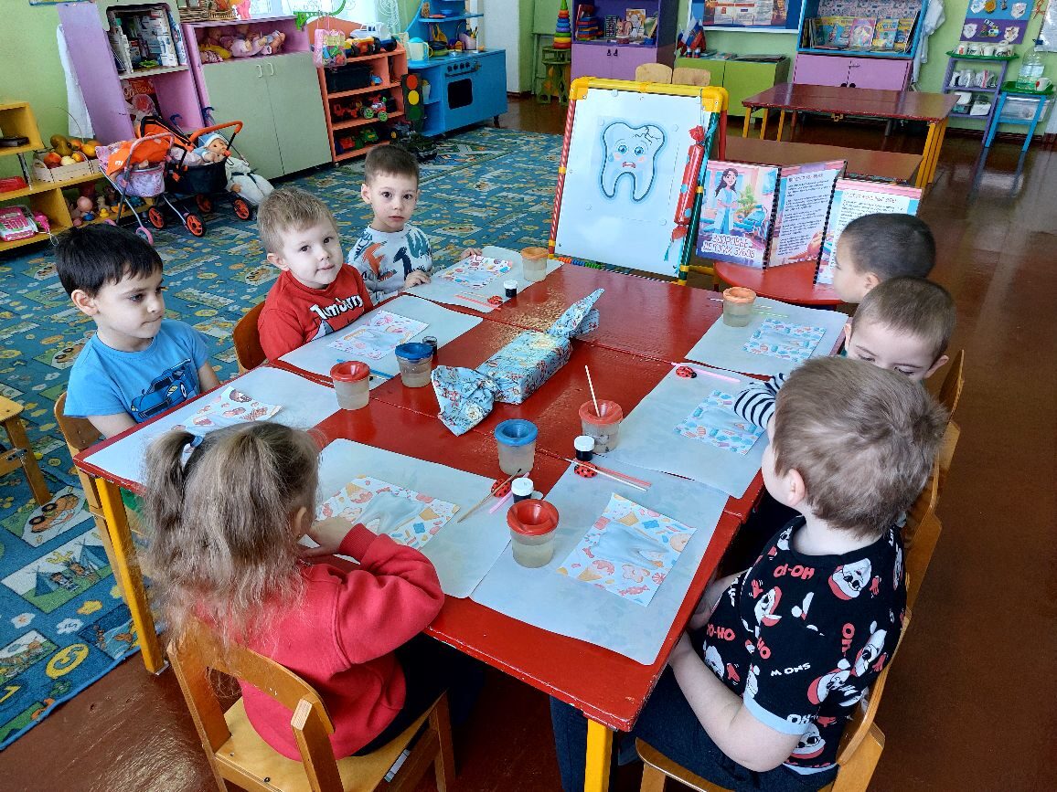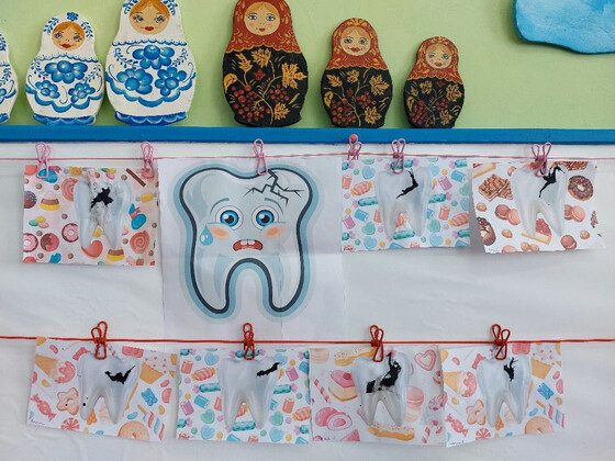 Как поел – почисти зубки, Делай так два раза в сутки! Предпочти конфетам фрукты- Очень важные продукты! Сладости любят, пожалуй, все дети, не догадываясь о том, какие негативные последствия могут возникнуть от их злоупотребления. А между тем исследования показывают, что употребление большого количества сладостей и газированных напитков может привести к развитию кариеса. Учитывая важность данной темы, воспитатель Федосеева Юлия Владимировна провела с малышами средней группы и их родителями ряд мероприятий. Все они направленны на формирование потребности в сохранении здоровья зубов и чувства ответственности за своё здоровье. С воспитанниками была проведена беседа «Сладкие привычки и их последствия», затем ребята просмотрели развивающий мультфильм «Добрый̆ доктор Стоматолог». Повысить компетентность родителей в вопросах профилактических мероприятий помогла предоставленная им папка-передвижка «Здоровье детских зубов» с рекомендациями по уходу за молочными зубами и необходимости правильного питания. Итогом мероприятия стала художественная деятельность детей с применением нетрадиционной техники рисования «Кляксография».