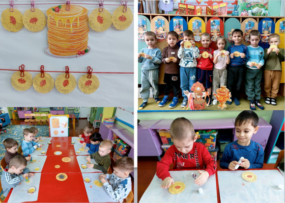 Масленица, Масленица, Дай блином полакомится! Погони от нас метели, Прокати на карусели! Растопи холодный лёд, Пусть весна скорей придёт! Наша страна богата своими традициями и обычаями, их многообразие, это огромная часть культурного народного наследия, делающих Россию богатой и уникальной страной. Одной из таких традиций является празднование масленицы, символизирующей прощание с зимой и ожидание тёплого весеннего солнышка. С целью формирования представлений о традициях проведения народного праздника – Масленица, воспитатель средней группы Федосеева Юлия Владимировна провела веселую, озорную и вкусную тематическую неделю. Которая началась с беседы «Кто такая Масленица», «Блин - как символ солнца» и оформления приёмной комнаты символами масленицы, подчёркивая связь с традициями и создавая атмосферу тепла и радости. Ребята погрузились в эту атмосферу и в течение недели знакомились с традициями праздника Масленица через изобразительную деятельность, создавая платье для масленицы в нетрадиционной технике рисования «тай - дай». Знакомились с главным угощение праздника – блинами, через рисование поролоном и увлекательные задания, в форме дидактических игр «С чем блины», «Собери блинчик с начинкой», проявляли интерес к русской культуре и традициям. Итогом масляной недели стало народное и задорное развлечение, проведённое музыкальным руководителем, на которое ребята собрались, чтобы проводить Зимушку и встретить долгожданную Весну. Они водили хороводы, участвовали в традиционных масленичных забавах, таких как: «Перетягивание каната», «Скачки на конях», «Эстафета с блином», «Карусель», «Метание валенка». Кульминационным и ярким зрелищем Масленичной недели стало сжигание чучела, символизирующее прощание с зимой, которое ребята наблюдали на экране интерактивной доски в целях безопасности. В завершение праздника «Весна» угощала детей ароматными и вкусными блинами, символом солнца. Эта замечательная неделя, прошла в атмосфере тепла и веселья она стала Сырной седмицей - подготовкой к Великому посту. | |